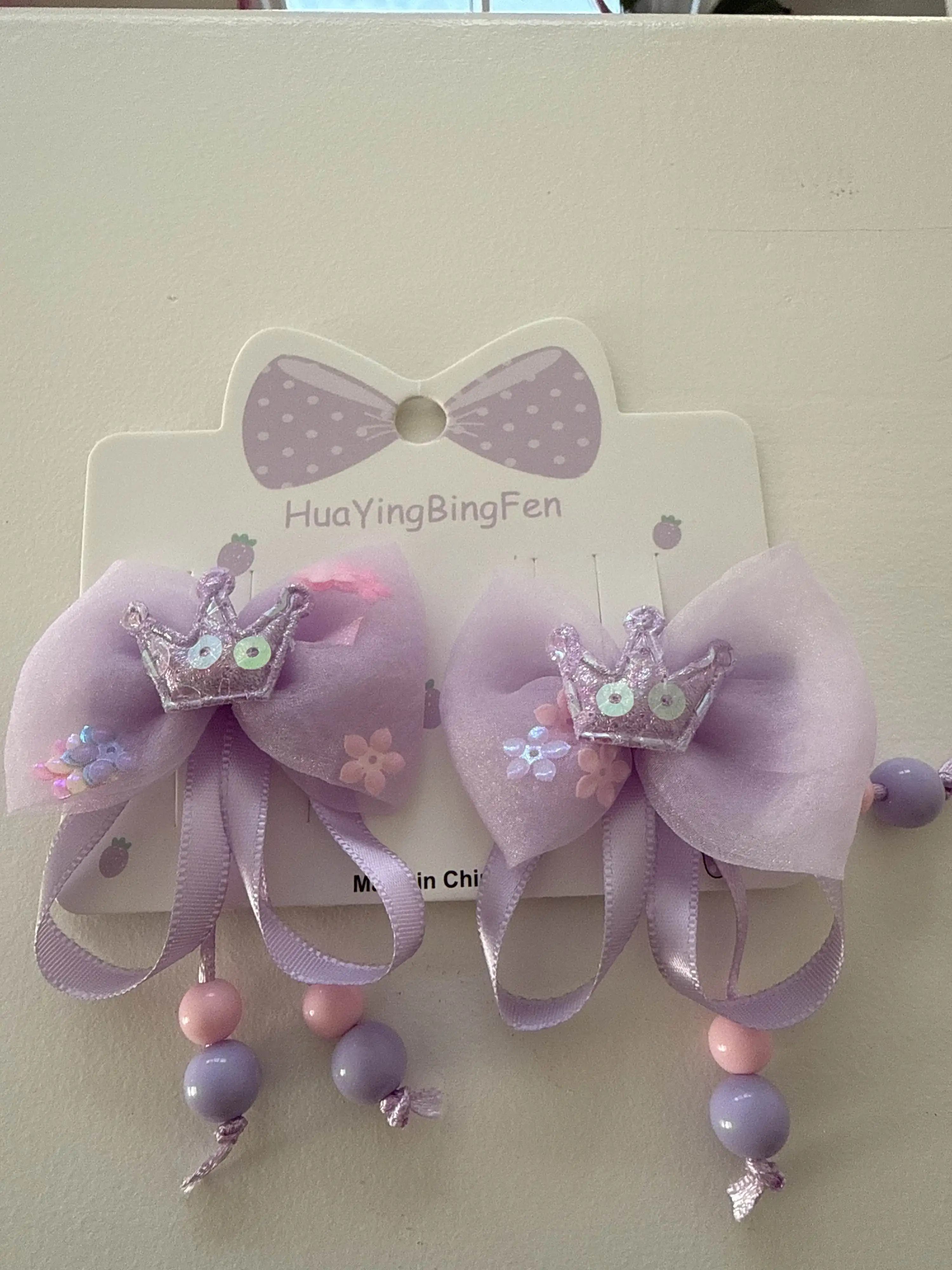 2pcs Chinese Costume Sweet Candy Bowknot Hair Bow Clip Set Tassel Beads Flower Hair Pins Kids Hair Accessories for Girls Jewelry
