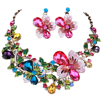 Bunte Blume Diamant Kristall Halskette Ohrring Schmuck Set