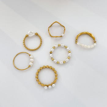 Modisch beschichtete 18K-Gold-Süßwasser-Perlenringe bohème-Perle Edelstahlring Schmuck für Damengeschenke