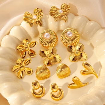 Fashion High Quality Gold Plated Stainless Steel Stud Earrings Bow Pearl Flower Waterproof Gifts Earrings for Women